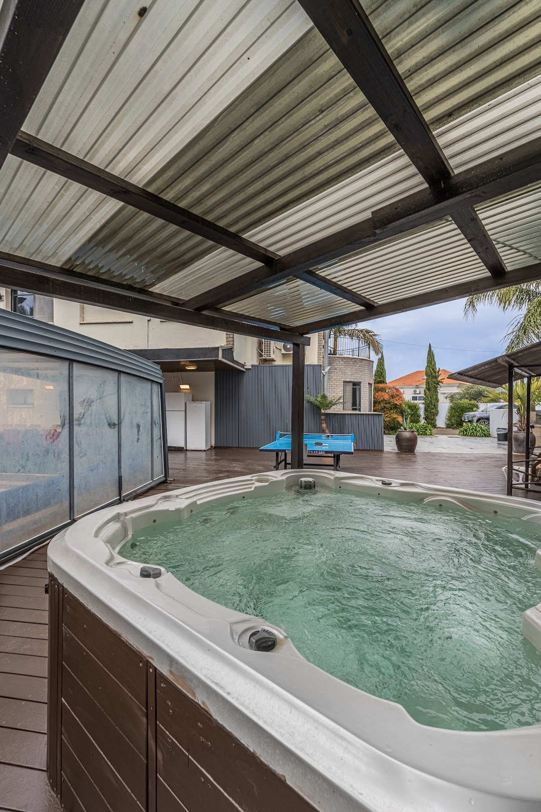 חצר נופש עשירה ומהנה במיוחד ממתינה לכם עם בריכת שחייה (מחוממת ומקורה בעונה), מיטות שיזוף, פינות ישיבה, ג'קוזי ספא מפנק, עמדת ברביקיו עשויה אבן, פינת אוכל חיצונית, , מגלשת ענק למים, שולחן פינג פונג,  קיר טיפוס, מגלשות נדנדות, ומתקני גימבורי רבים לקטנטנים. נופי גליל קסומים.